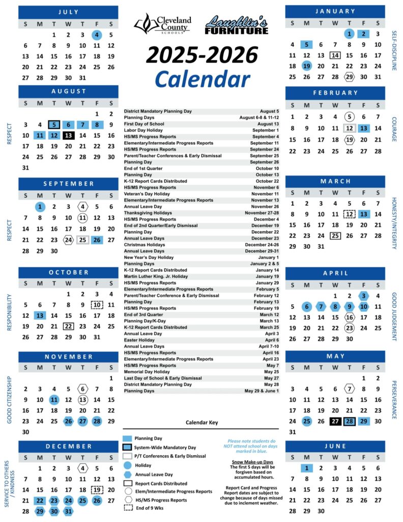 Cleveland County Schools Calendar 2025-2026